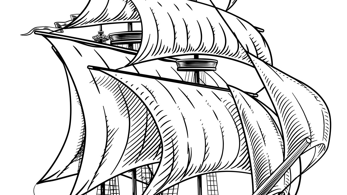 Old Sailing Ship Vintage Woodcut Etching Illustration