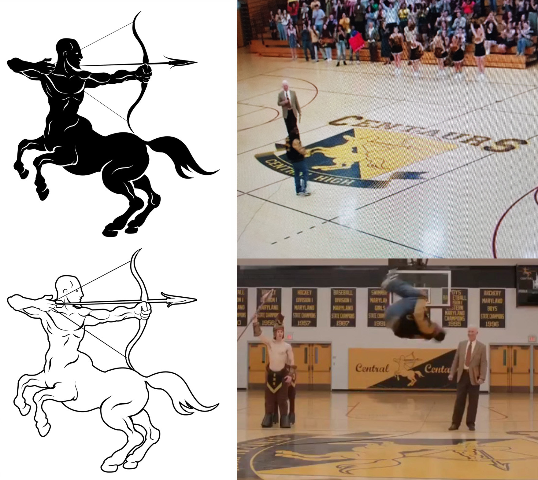 Centaur illustration on “golden jacket” and in gym scenes from Central Intelligence, Kevin Hart and Dwayne “the Rock” Johnson film.