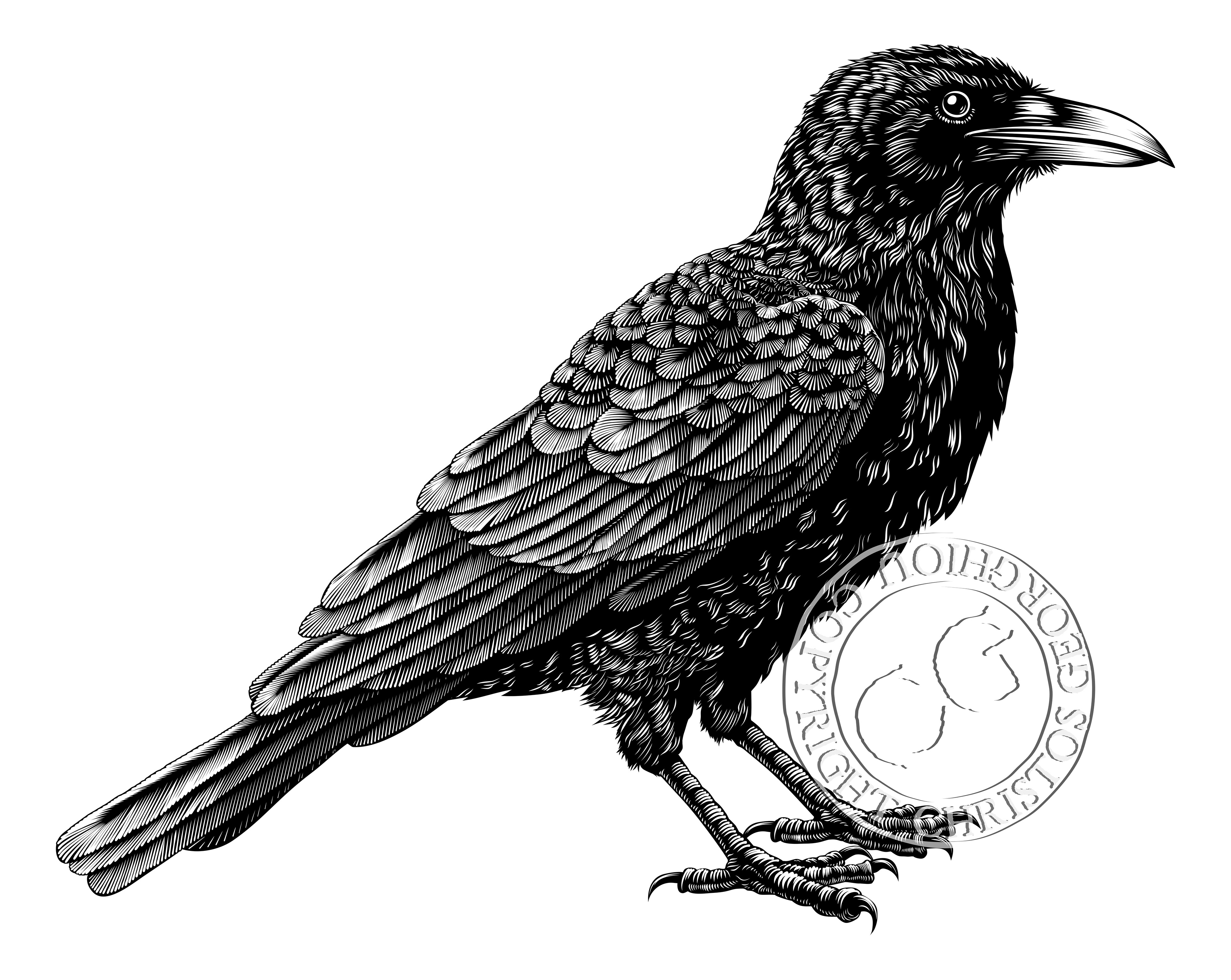 Crow Raven Rook Bird Vintage Engraved Woodcut